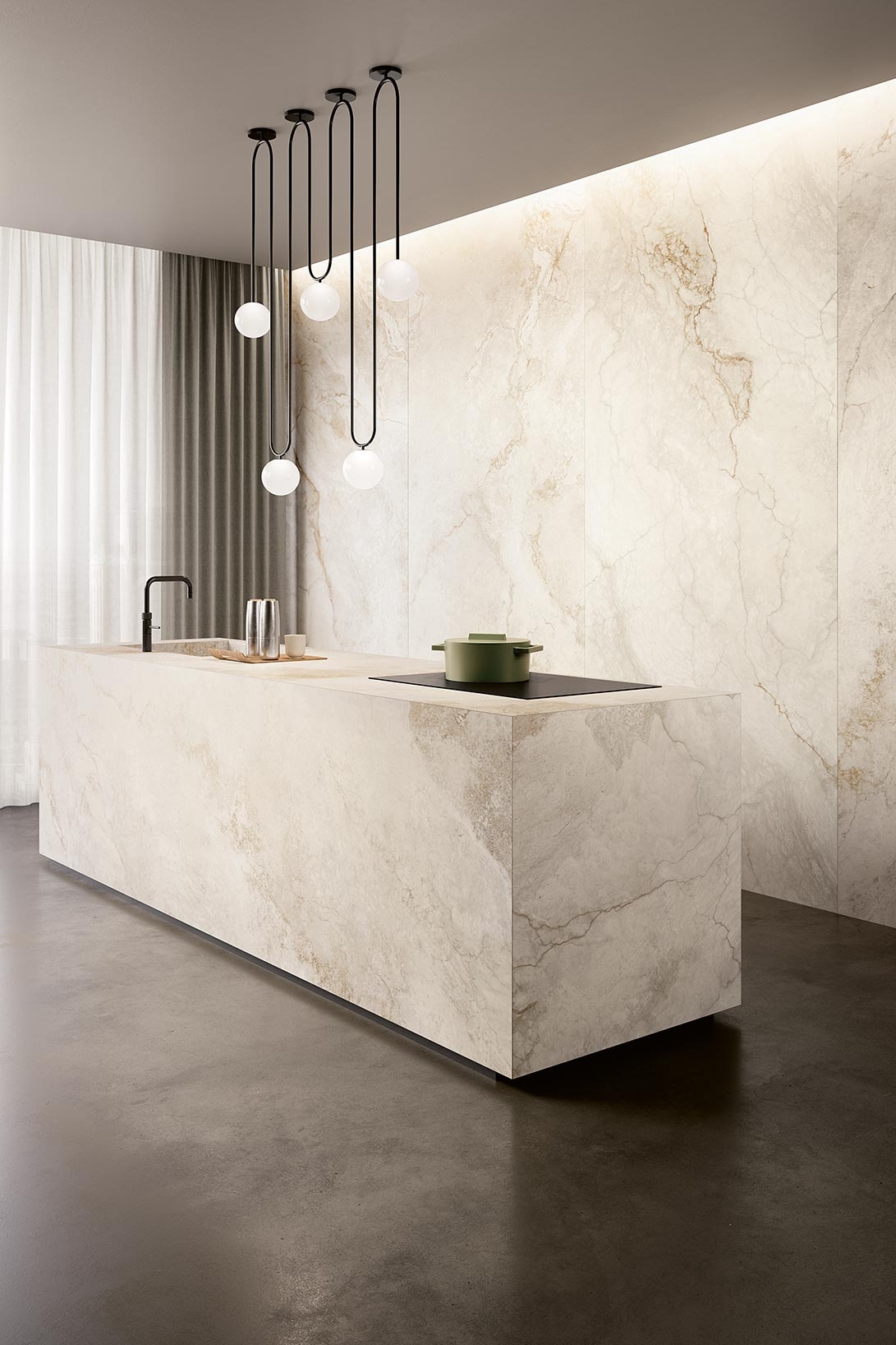 Grootformaat slab van Coem Touch. Prachtige travertinlook, kom bewonderen in de showroom